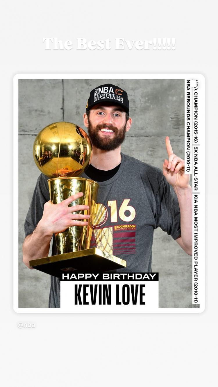 詹姆斯转发NBA官方发布的为凯文-乐福庆生贴,并写道:“史上最好的!爱你,兄弟!‍”